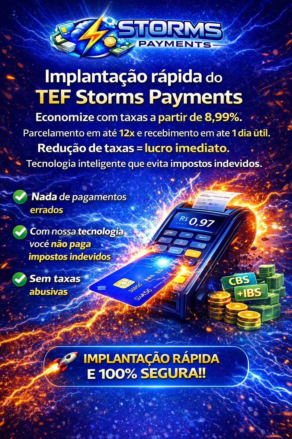 Desde que adotamos a tecnologia TEF da Storms Payments, nossas taxas caíram significativamente e o controle das vendas ficou muito mais eficiente. O suporte e a implantação foram rápidos, o que nos permitiu focar no crescimento do negócio.