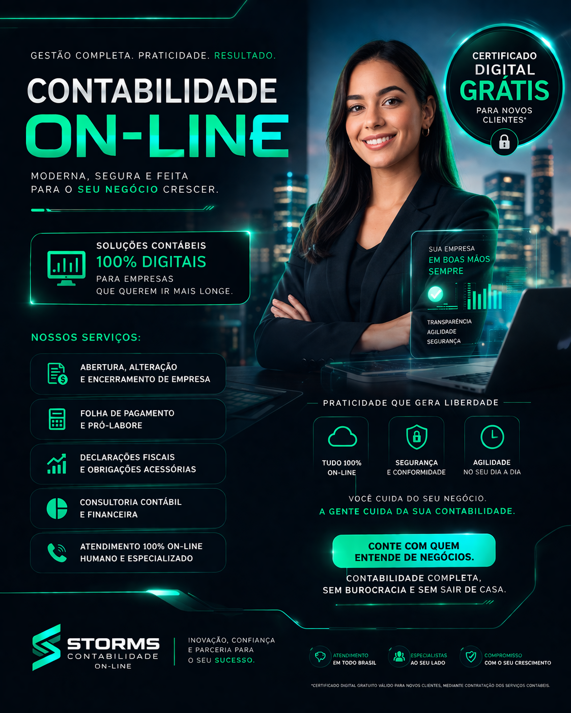 A Storms Payments oferece uma contabilidade 100% digital, moderna e segura, pensada para empresas que querem crescer com controle, agilidade e inteligência financeira.